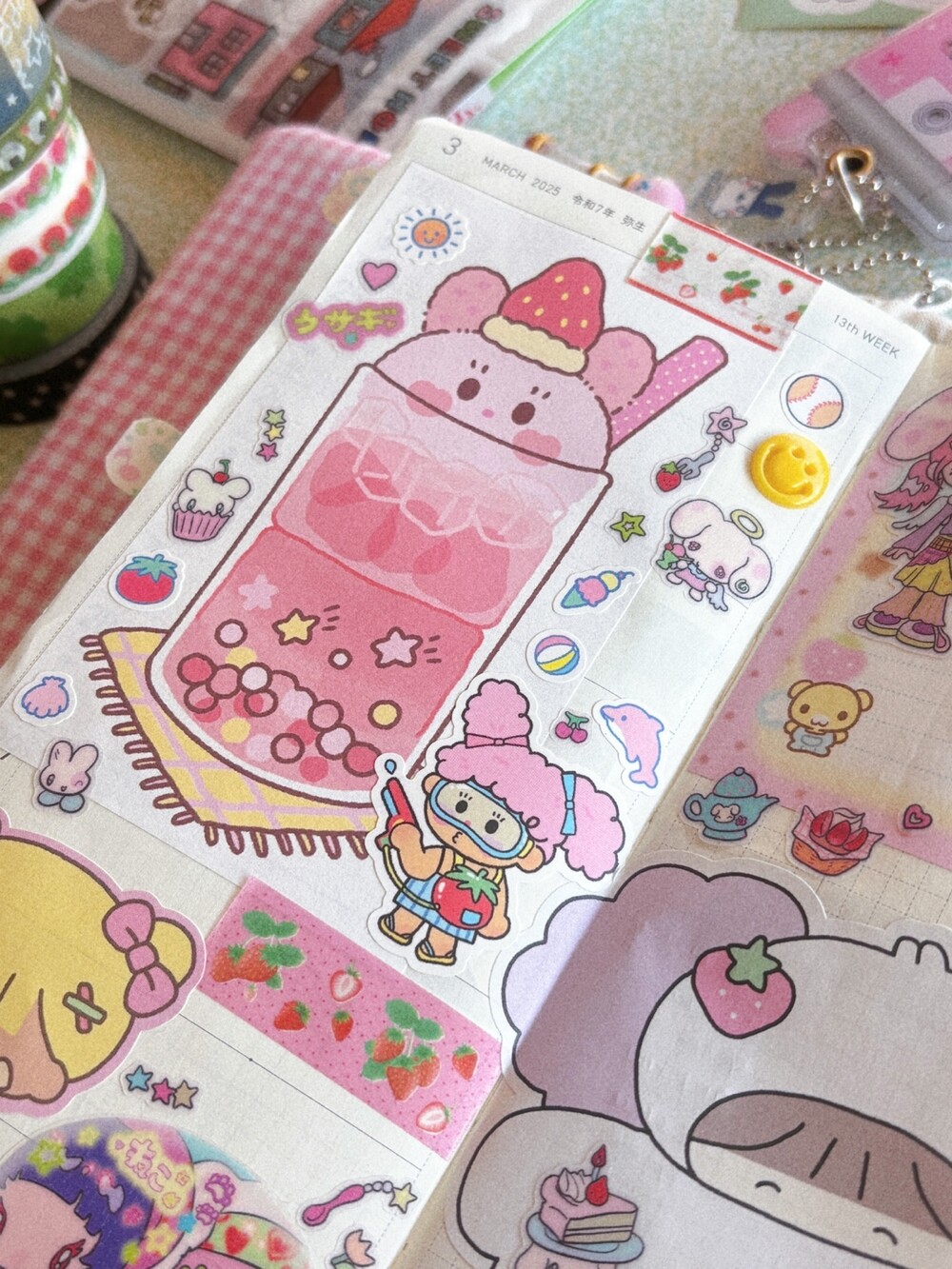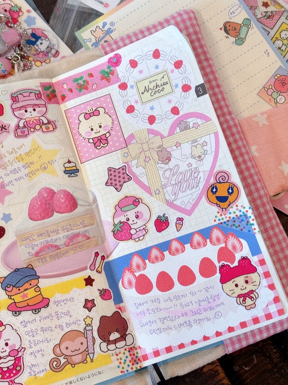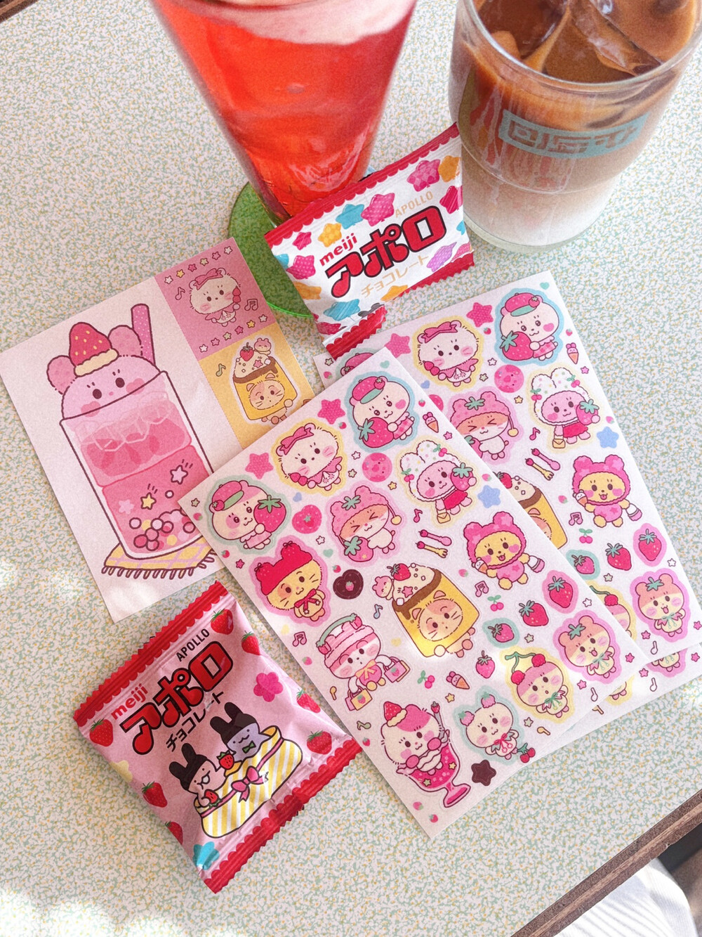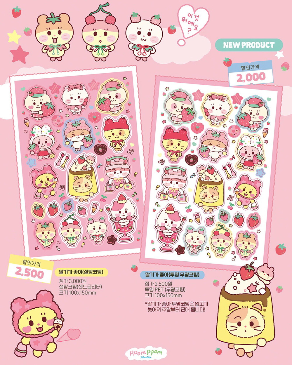 츄잉 캔디처럼 매끈- 한 무광 코팅으로 만들어진 딸기가 좋아 씰 입니다.
