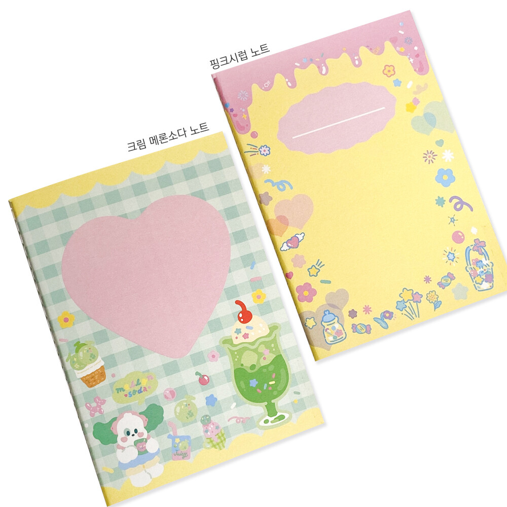 22년10월경 제작된 핑크시럽 노트 책등 실제본이 연보라에서
