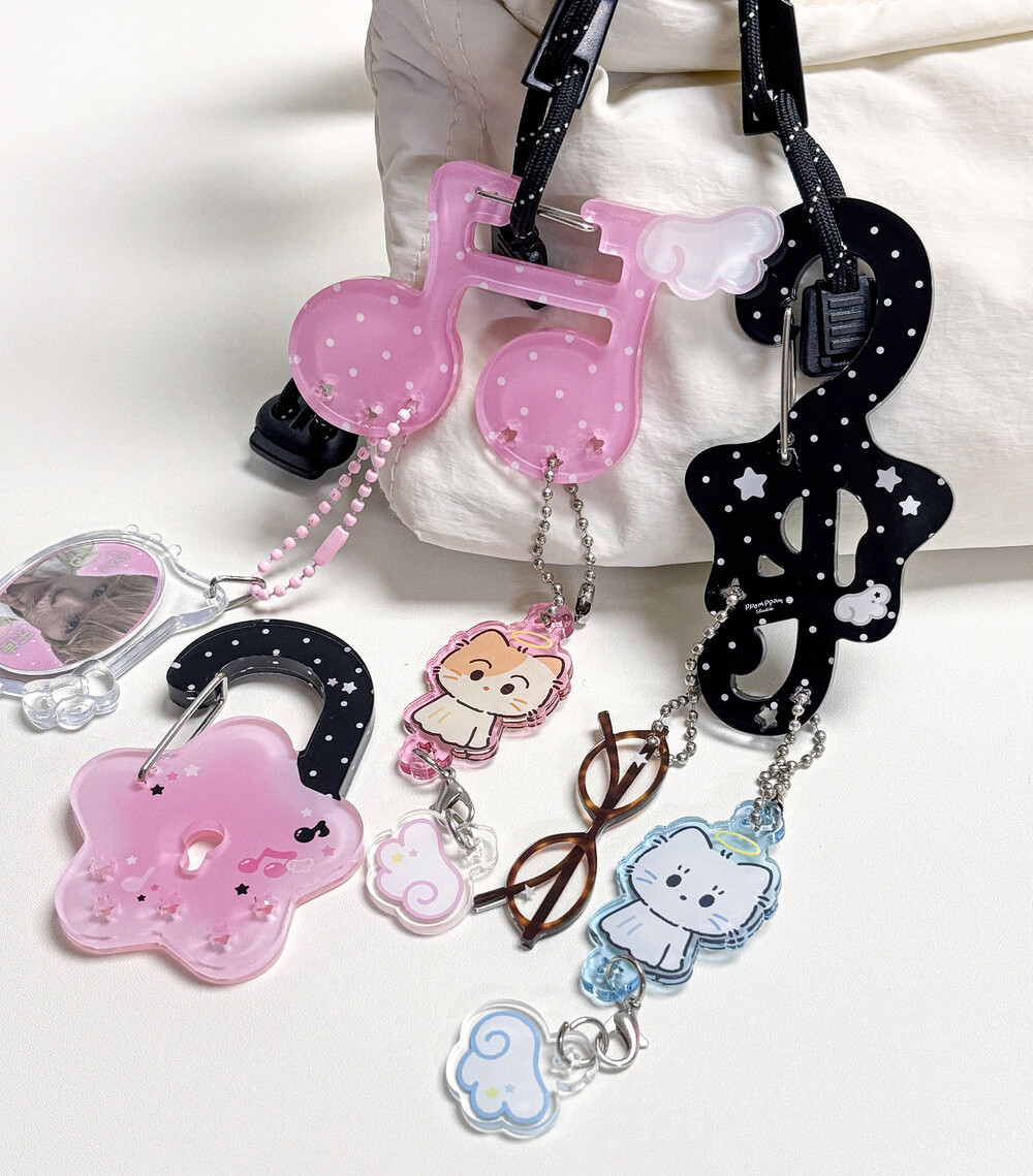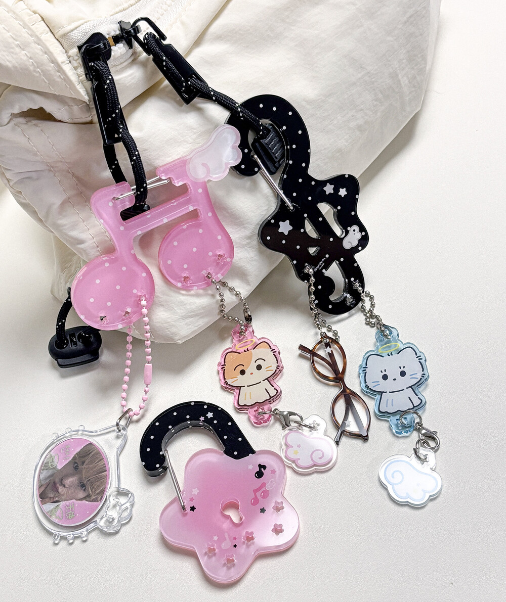 가방에 악세사리로도, 키링을 여러개 걸 수 있는 카라비너입니다.