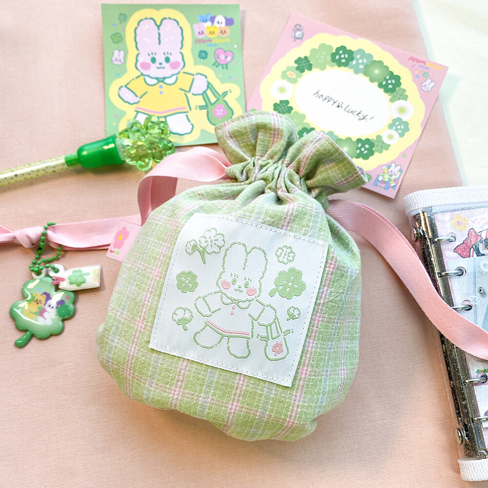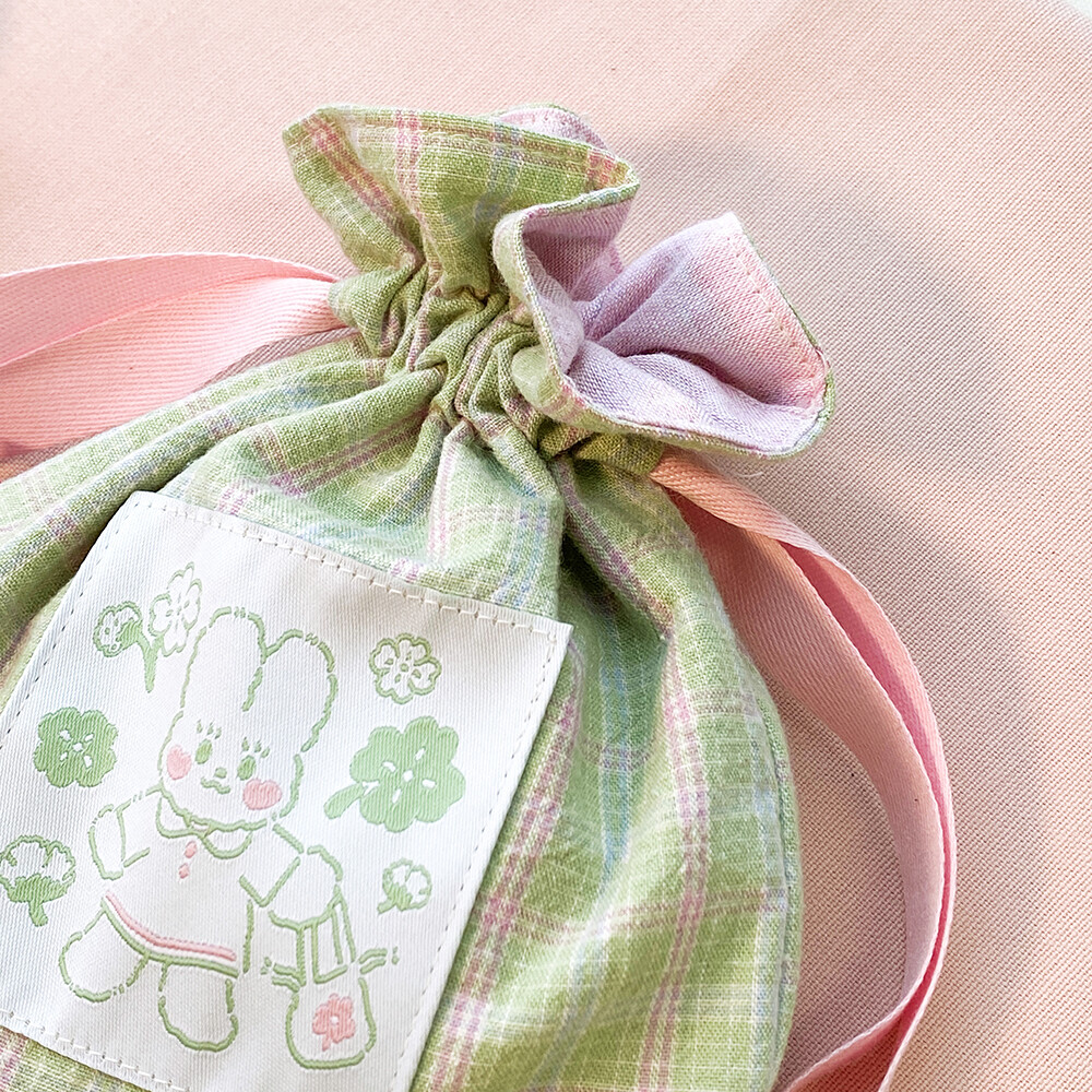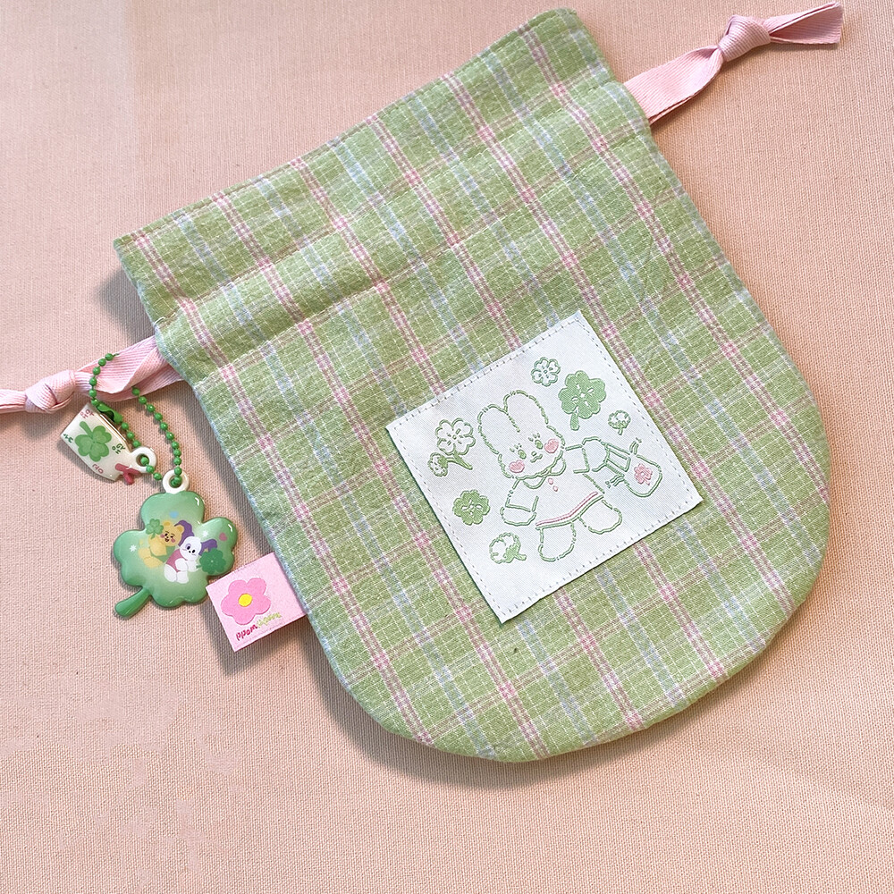 싱그러운 연두빛을 가득 담은 복주머니 파우치 입니다.