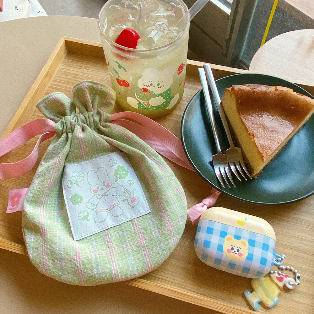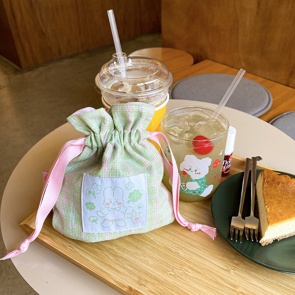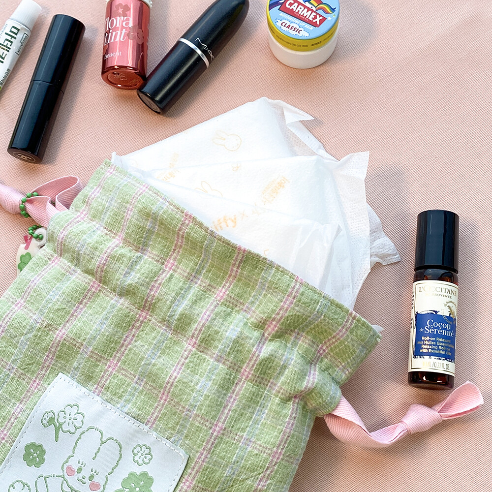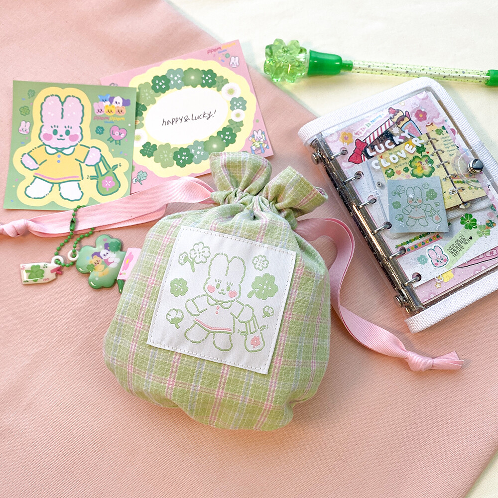 싱그러운 연두빛을 가득 담은 복주머니 파우치 입니다.
