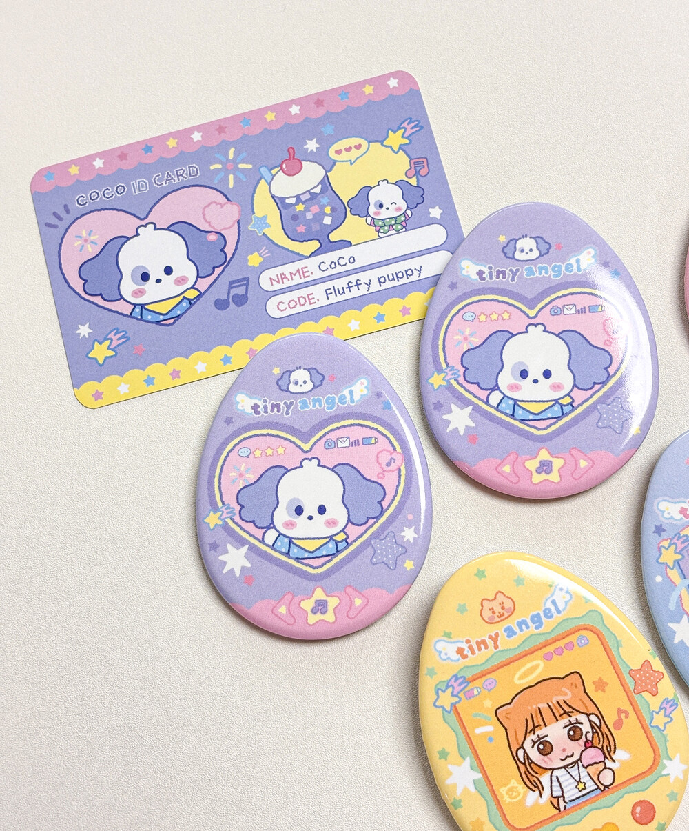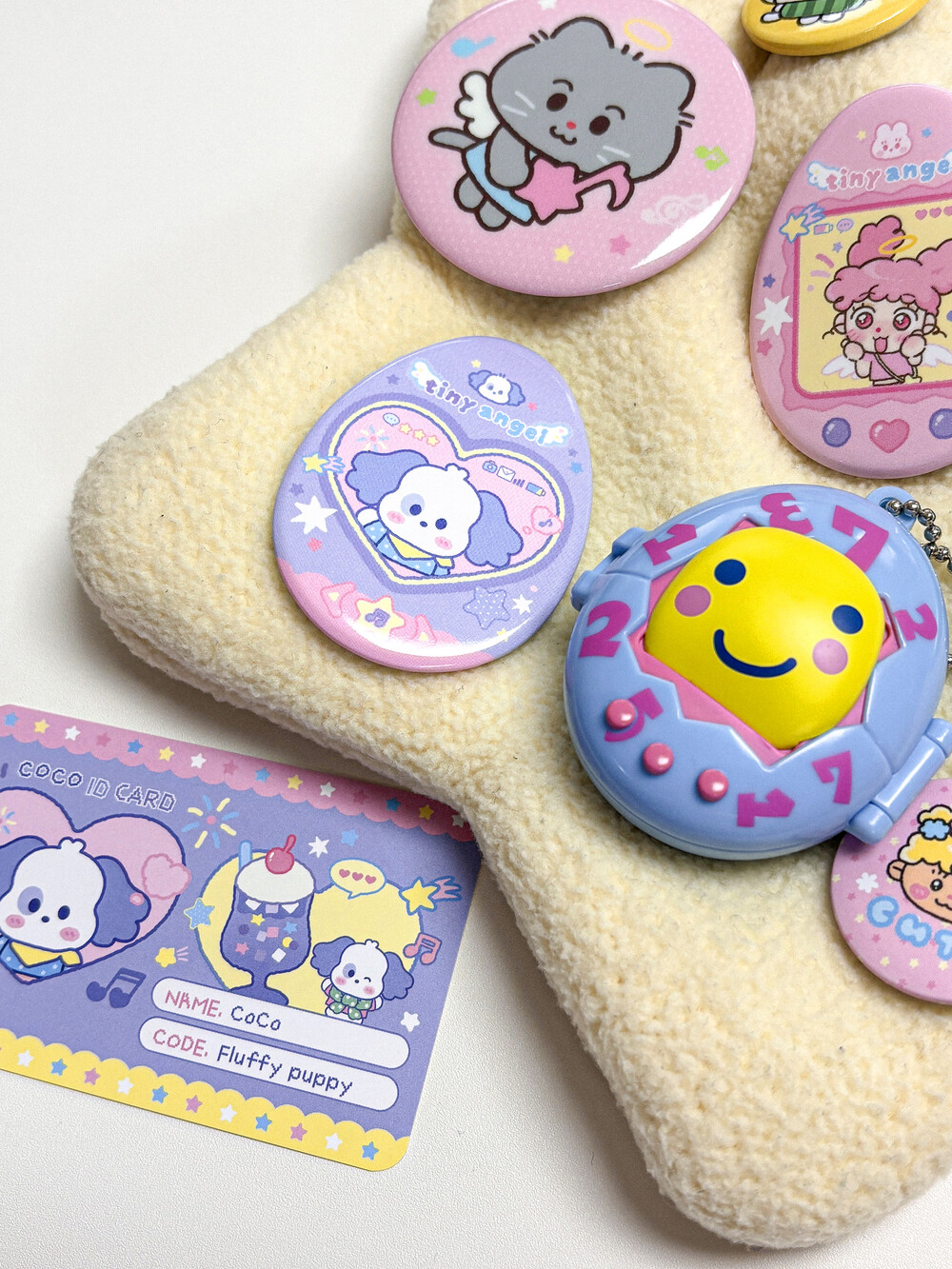 작은 달걀모양의 레트로 폰에 담긴 코코 뱃지를 만들어 봤어요💜