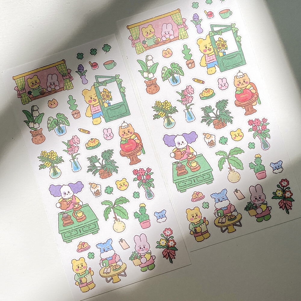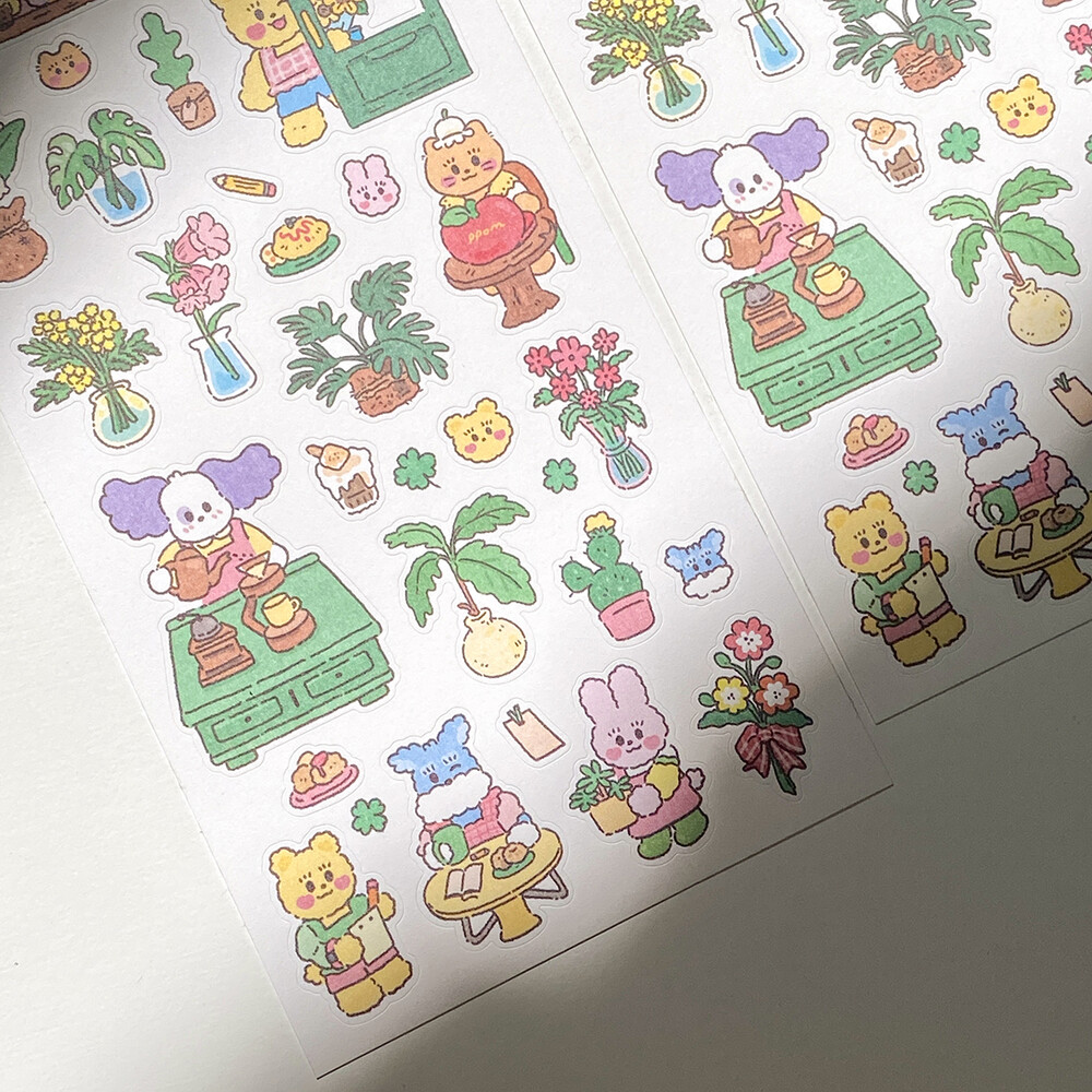 식물 카페를 운영하는 토비,써니베어,코코의 카페에서 한가로이 작업하는