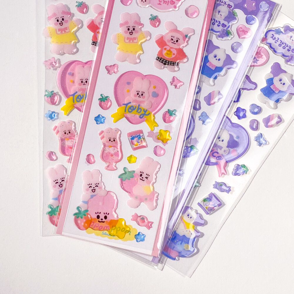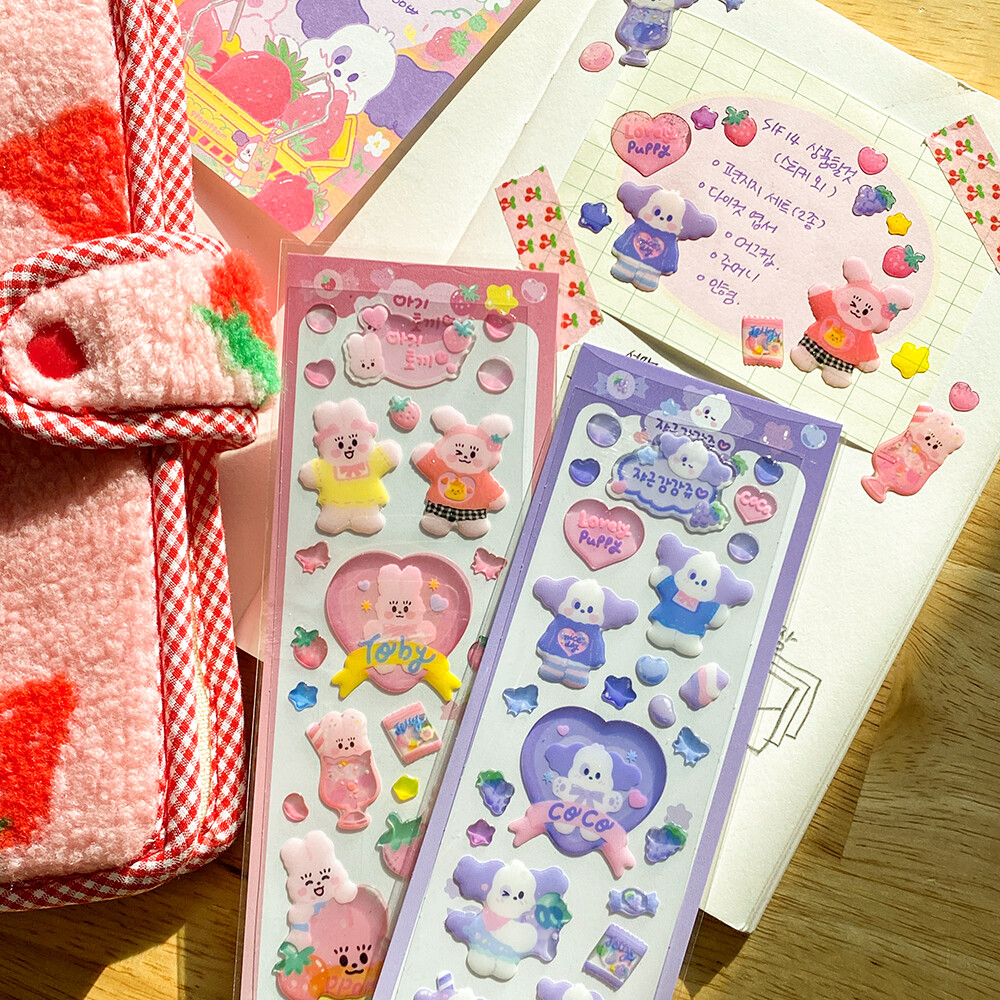언제나 행복한 토끼 토비와, 수줍음이 많은 포도향이 나는 강아지 코코를 담았습니다.