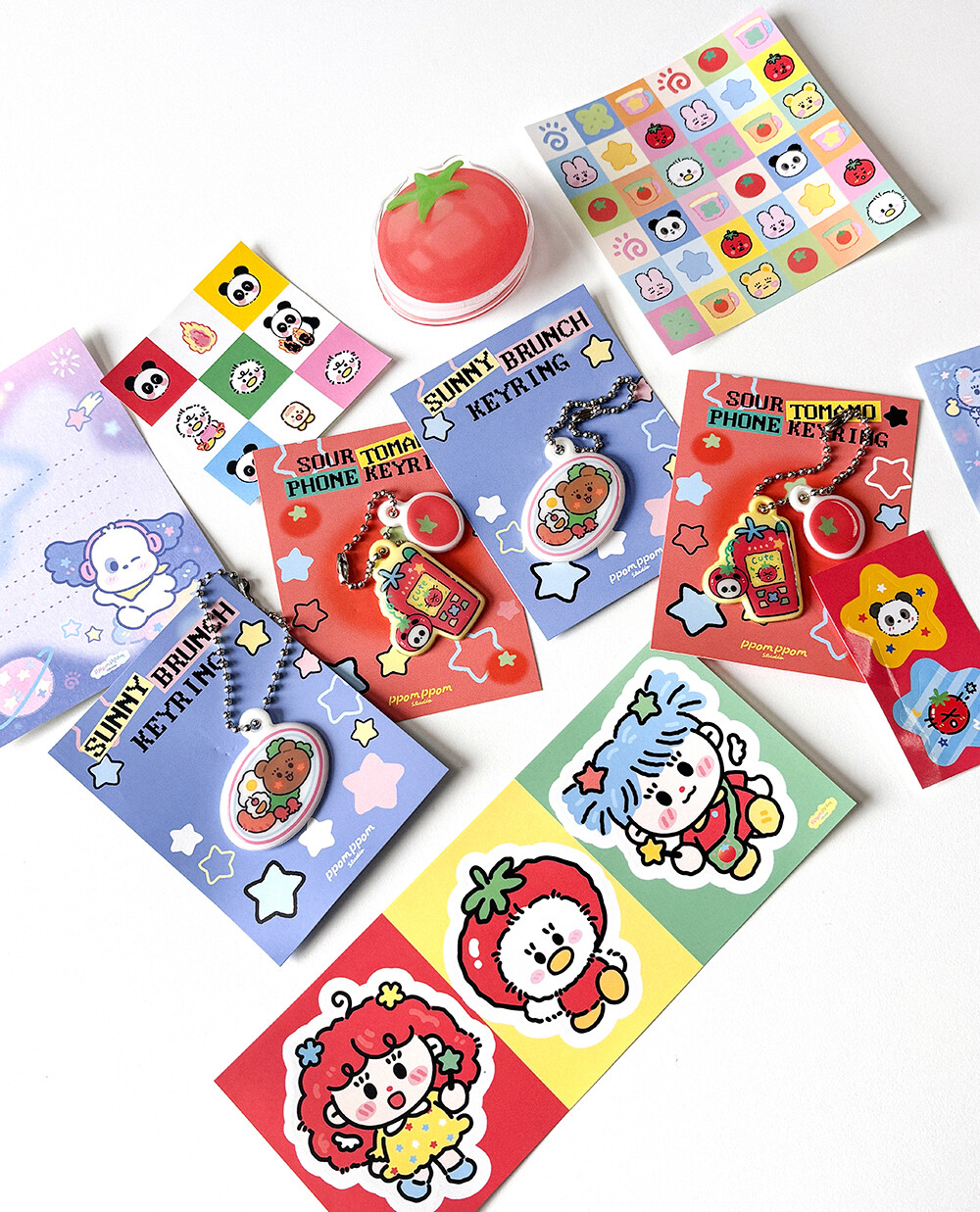 1.새콤 토마토 폰 키링(레드) / 2.써니브런치 키링(블루)